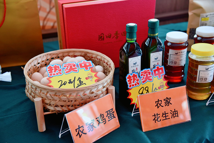 等到离开度假村的时候,也可以在前台带上一些农产品回家哦!增城最有名的迟菜心,农家鸡蛋、花生油、荔香丝苗米、白水寨番薯什么的,看上去还挺不错哒!