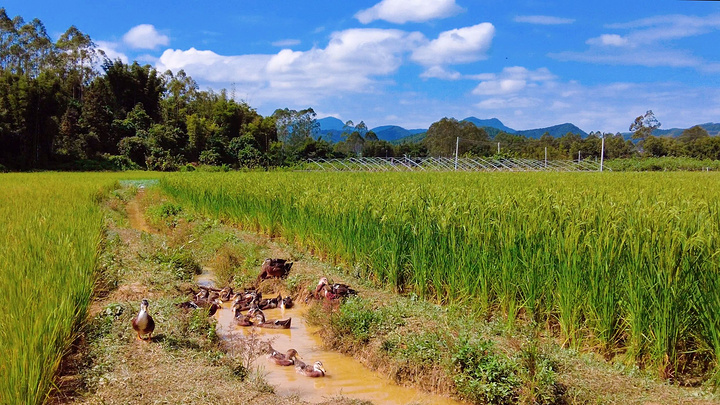 要是还没玩够,附近有个万寿农场。在这儿,大片的稻田在蓝天白云下美得像一幅画;木瓜种植地里摘木瓜;还有成群的鸭子在田边嬉戏……