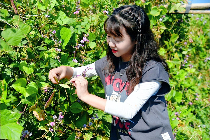 骑着小电动车一路吹着风,去度假村的田里摘豆角、青菜……我想这也许是城里长大的孩子最喜欢的活动之一吧,体验一下农活,感受丰收的喜悦!