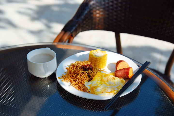 秋天的山里夜晚已有了几分清冷,暖暖泡个温泉,一夜好眠!清晨来到餐厅的露台餐桌,吃上一些度假村自己种植的玉米、红薯…美好的一天就又开始啦!