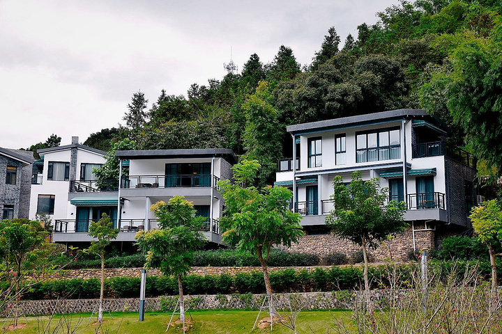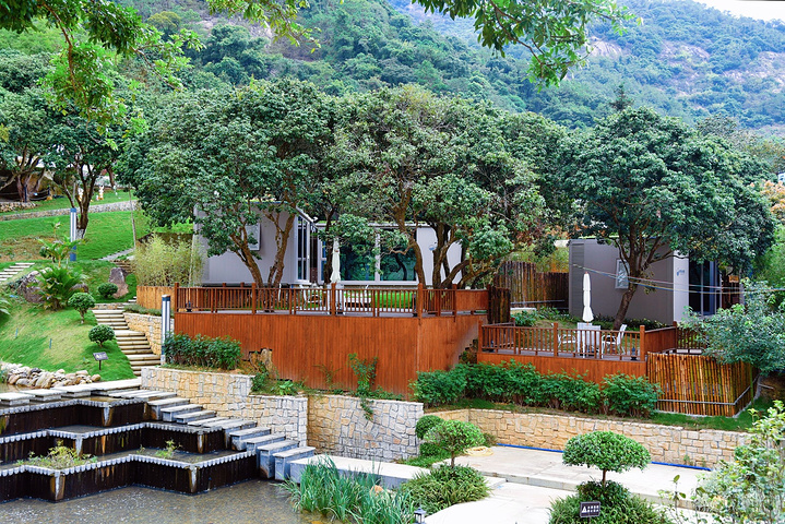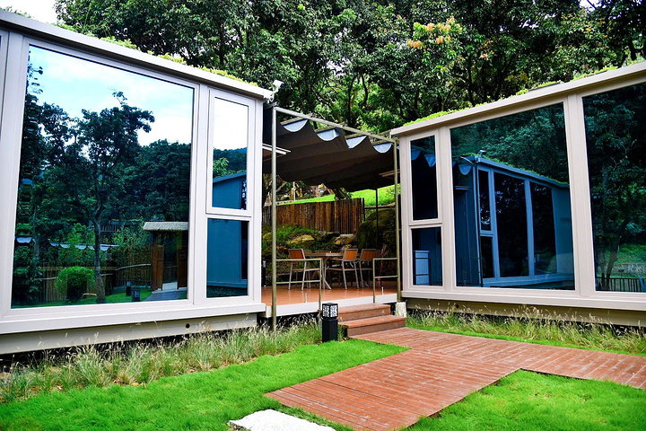 住宿也有很多选择:竹林间的别墅,露台很是别致,更是能从高处一览度假村的全景;或是小院子里的集装箱房,这样更加亲近大自然。