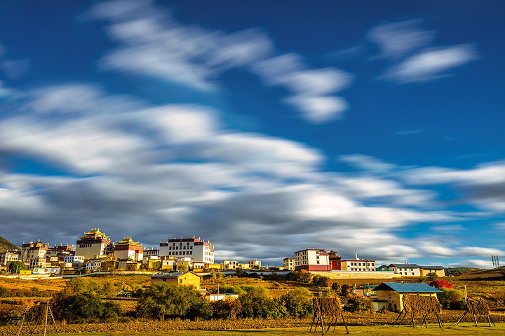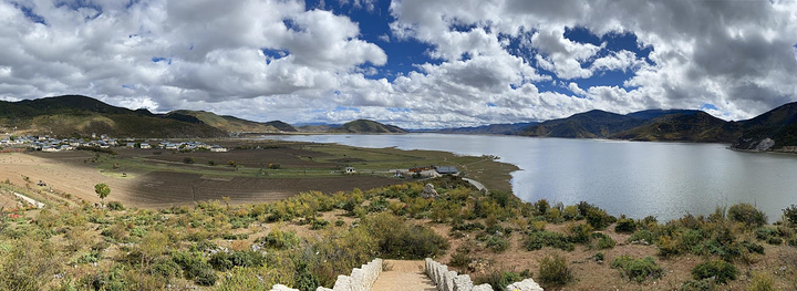 回到林卡,晚餐前在林卡里面转转,原来我们的房间隔着一个草场正对着松赞林寺的背面。