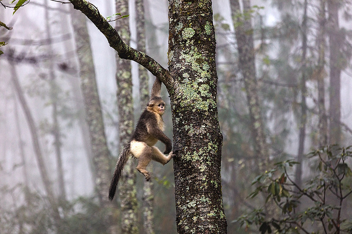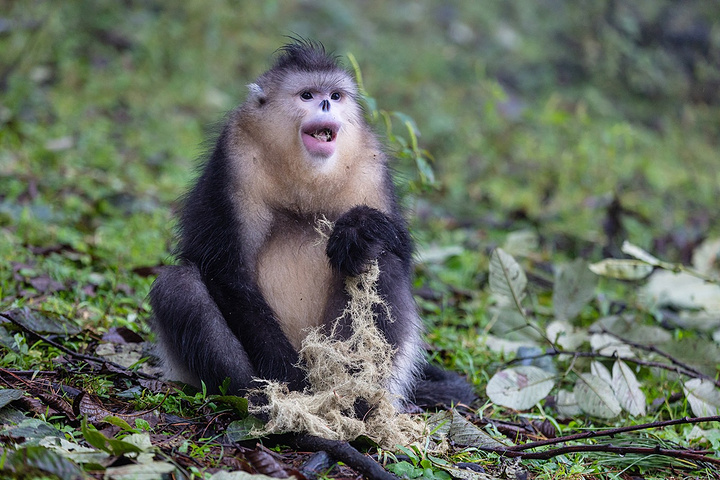 滇金丝猴性感的红唇在灵长类动物里绝无仅有,黑白灰相间的绒毛也是其典型特征。