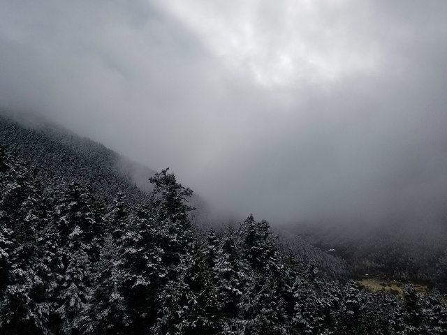 上山坐的是缆车,6个人左右一台。随着海拔的升高,枝头、山顶的白霜变积雪,一下缆车,看着山顶白雪皑皑~~~真的太美了,来的正是时候!!!原始森林银装素裹,青烟飘袅,俨然来到世外桃源一般,加上平日人不多,拍照也不会人挤人~~巴适得很!!!