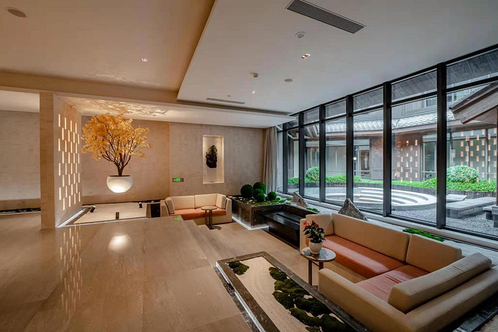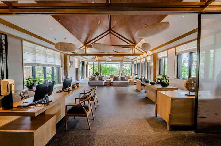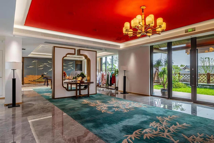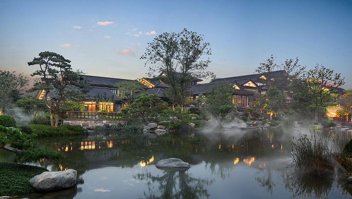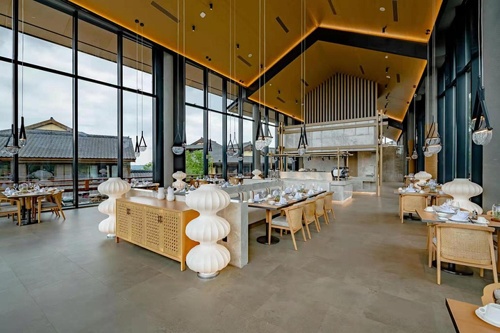 花间堂有宠物驿站,前台还有可爱的大金毛,喜欢宠物,想带宠物来玩的可以考虑花间堂,他家还有花间食全景玻璃餐厅,非常好看,餐食也很丰富,食材高级新鲜。