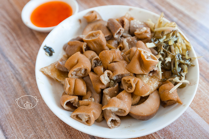 食材就是「五花肉」、「猪大肠」、「豆干」、「卤蛋」、「鱼饼」等,想点哪种,捞上来,老板娘会切成一段段的,老板说全是自己做的,尤其是他的卤汁特好味,就点了每样来一些,搞成一大盘。粿片淋了猪肉卤汁,加了香菜、酸菜后一人一碗,自己加卤味,非常赞!哈哈,这个酸菜超好吃,老板原来配的也不多,看我们说好吃,马上过来帮我们加上一大份。我们几个瘦人都不喜欢吃肥肉,所以没点卤五花,老板说他的五花一点不肥腻,入口即化,每人给我们送了一块,让我们品尝,果然好吃。店是小店,但人情味很浓,价格也不贵,一个人也就十来块,幸福。
