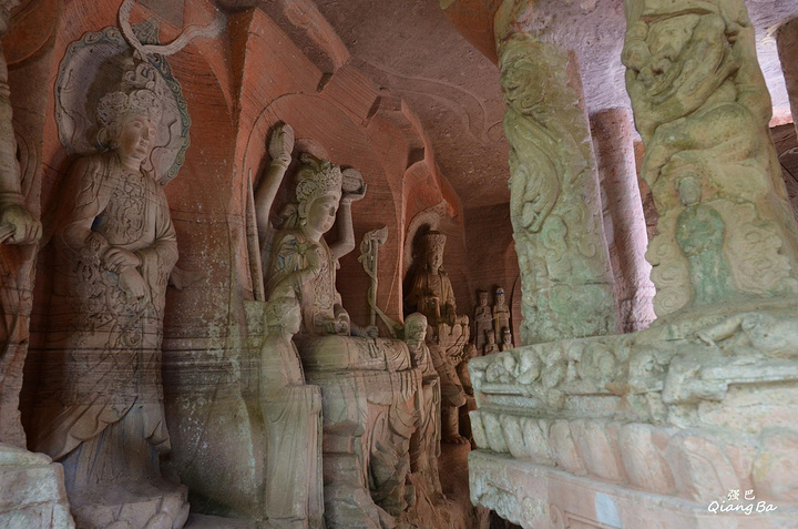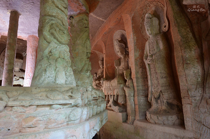 大足石刻北山石刻,北山石刻距宝顶山约20分钟的车程。
