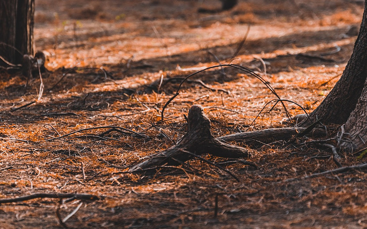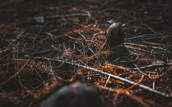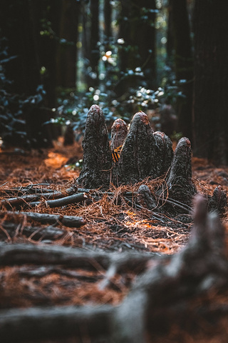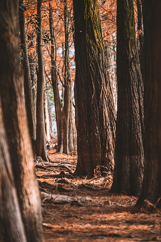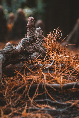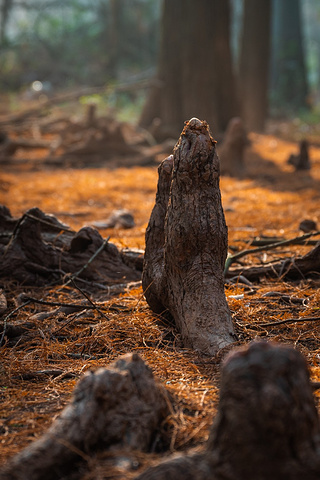 树木下方的根茎很多裸露在地表外,特别的野外森林感。