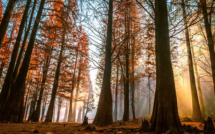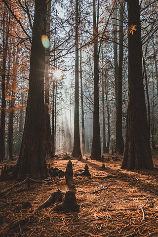 如果想拍森林光线,要早上8~9点左右来,光线刚好射入林子内
