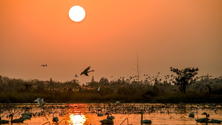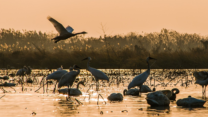 这里是世界上目前最大的越冬白鹤、东方白鹳、鸿雁等候鸟群体聚集地。