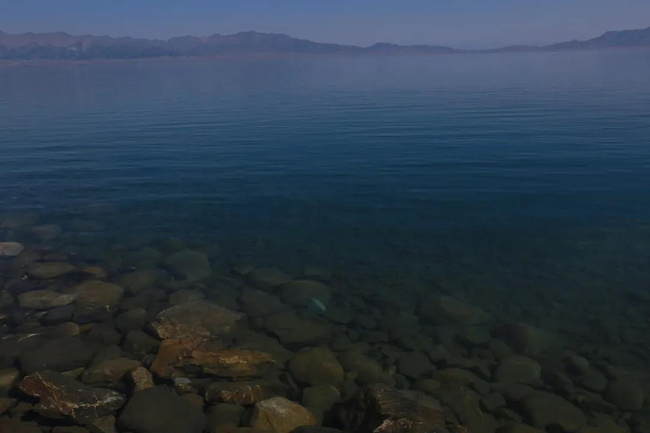 贴近湖边行走于木栈道,湖水清澈见底,湖底的石头清晰可见。安静的湖面传来“扑通扑通”声音后便泛起一圈圈深蓝色慢慢散开,原来是鱼。