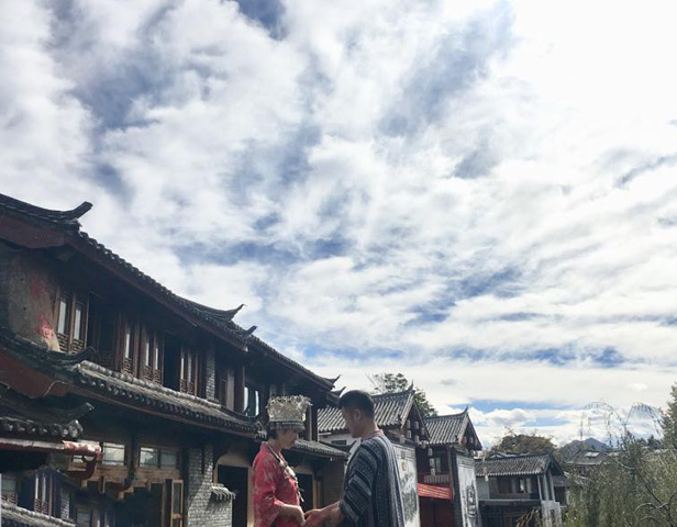 走到四方街有很多小夫妻在拍婚纱照,每个人脸上都洋溢着满满的幸福