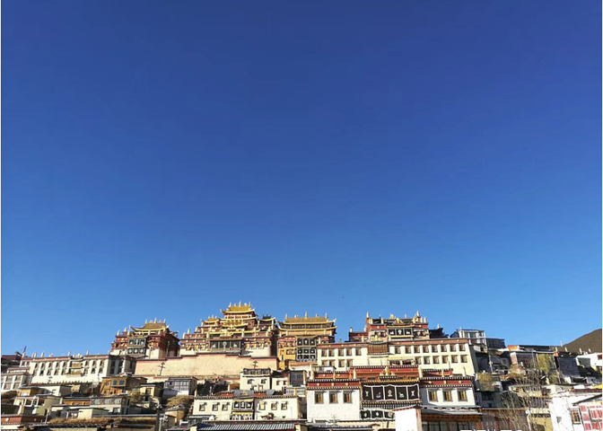 因为是淡季,加着几年前的大火,现在的独克宗格外冷清。饥肠辘辘在云贵高原吃了碗广西螺蛳粉,打车前往松赞林寺。
