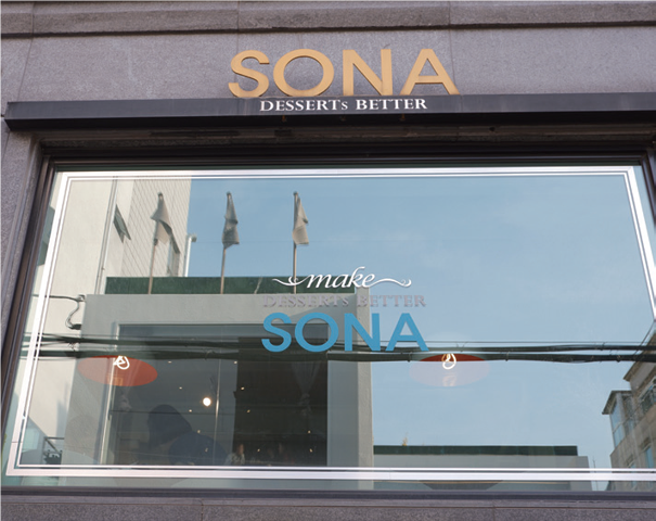 SONA是一家展示甜品也可以成为艺术的甜品咖啡厅。这里以富有创意的食谱和漂亮的摆盘而有名,在SNS上是以“漂亮的甜品”、“舍不得吃的甜品”而有名的地方。所有甜品都非常漂亮,看上去就像一件件艺术作品,其中最令人们称赞的是“香槟糖球”,将白砂糖凝固制作的球里放满了可食用鲜花和香槟泡沫。玲珑漂亮的外形即使放到美术馆里当作品展示都可以,光是看着就让人感觉心情甜蜜、幸福。将糖球用勺子敲碎,加入草莓酱后拌匀,味道非常梦幻。
