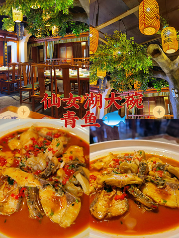 嘿嘿我一个人直接去的,没预约也没关系,这里都是四五六个一大家子去的。服务员态度都很好,服务员还问我是不是来调研的(可能看我在录视频),我特意问了是不是仙女湖捞出来的鱼,她说是的,仙女湖的鱼是仙鱼吗?哈哈哈。因为是一个人,还有留着肚子吃其他的,所以就点了一个菜😁。这里的点菜很有意思,有一个小牌牌,你要吃什么菜就拿什么牌子。等了快一个小时吧,因为是现杀先煮,我再一次向服务员确认这是仙女湖的鱼吗?她说:是的。很大一盘喔,肉很厚,绝对是我吃过鱼肉里最厚的,仙女湖的鱼确实与众不同,难怪要煮那么久啊。我一个人一碗饭一盘鱼,给我干撑了😂。还是不怎么辣,没感觉,快让孩子体验到江西辣的险恶吧。