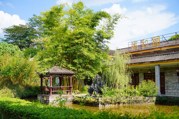 全古典岭南的装潢风格,青砖灰瓦,山水竹林相互辉映