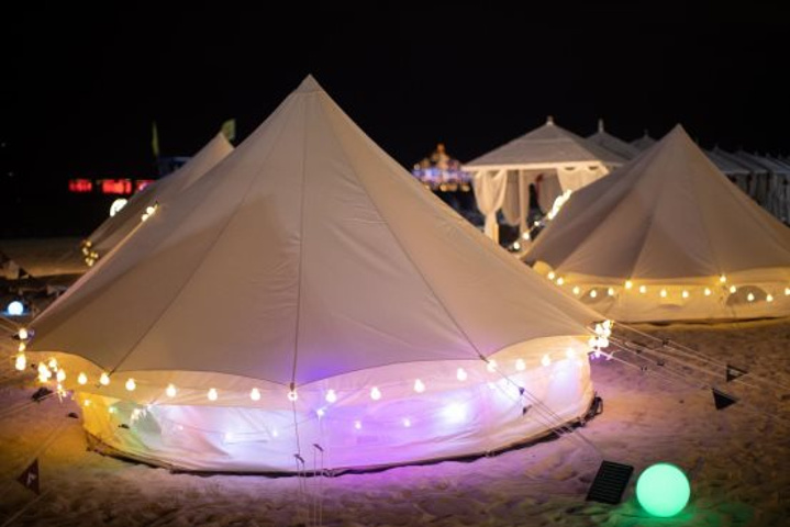 下午办理入住后大家开始相互帮忙搭帐篷,傍晚一起品着下午茶等待日落,夜晚躺在沙滩看露天电影、围坐在篝火前弹琴唱歌、玩游戏……我们选的是星空房,双层“小复式”浪漫又唯美,活动结束又邀新认识的朋友们来房间继续讲故事、聊八卦,享受海岛星空不眠夜。