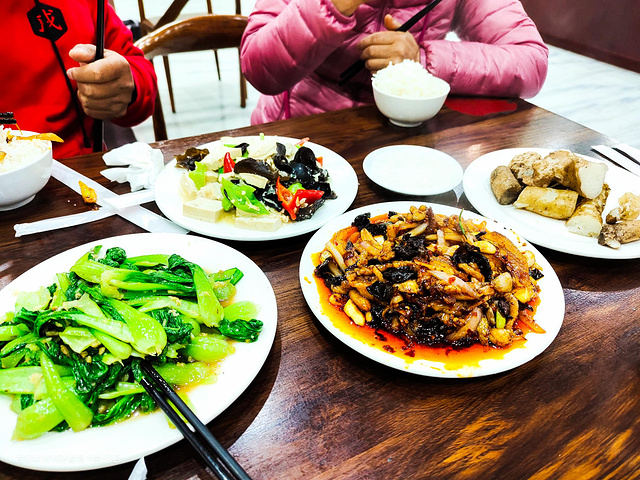 晚餐在住宿的三叶大酒店吃的,晚餐四个人花了120元,味道不错。饭后去岸上服务区的夜市逛了逛,夜市很热闹。