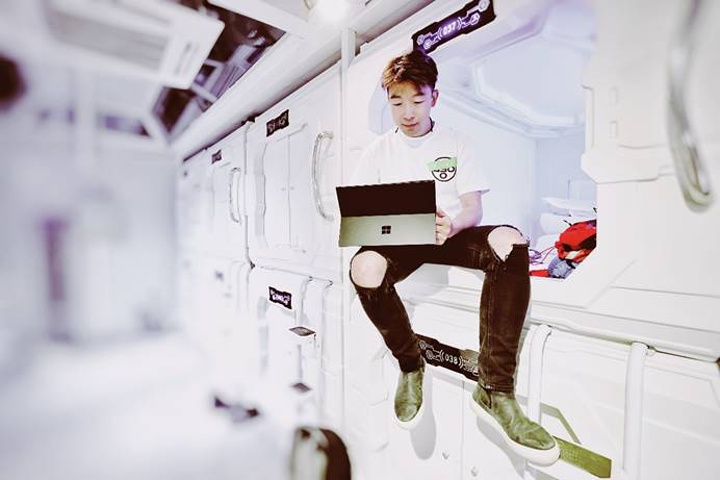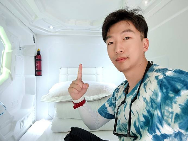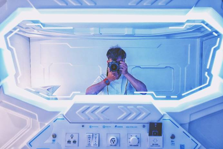 至于这里的住宿,一般分为两种:一人一舱的太空舱式和帐篷式房间,我选择的是太空舱,这里空间不算很大,刚好容纳一个人。
