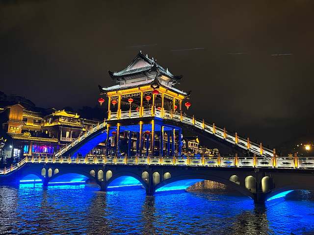 阴雨天的雪桥显得稍有落寞~古城墙上青苔在肆意横行,不过不要怕,她们没有侵占地面虹桥旁一排排的吊脚楼,下次我要来住吊脚楼上在民宿就能看到的美景晚上的雪桥显得格外的亮眼,好比化了美美的妆出门拍照的游客,像是被大雨洗净了凡尘来自游记拍照狂魔的凤凰3日游