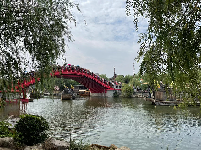 在这里我们置身于一个庞大的仿宋古建筑群中。进入园中看了到拂云阁、虹桥、水心榭、双亭桥、九龙桥等一批北宋时期开封著名的建筑,此外还有酒楼、茶肆、当铺等平民生活设施。而园中的工作人员、小商小贩们,都身穿宋朝的服饰。这些都会让你产生错觉:一脚踏入了北宋时代的东京汴梁。