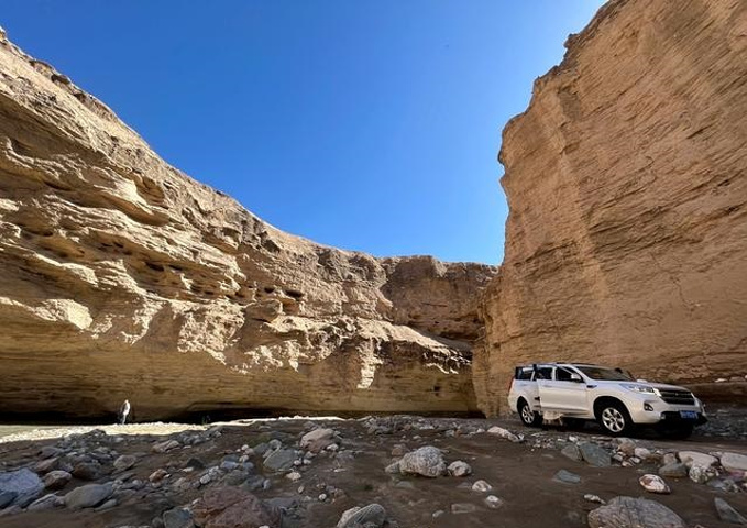 崖壁对峙,流水潺潺,前方犹如千军万马,站在越野车上拍一张打卡照,不枉专程走一遭。