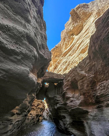 很多景区都有一线天景观,昆仑大峡谷的一线天持续了很长一段路程。