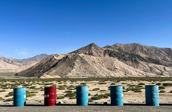 汽车继续涉水前行,溪流时而狭窄,时而宽敞,两岸的岩壁寸草不生,呼应昆仑山脉和格尔木郊外的荒凉感。