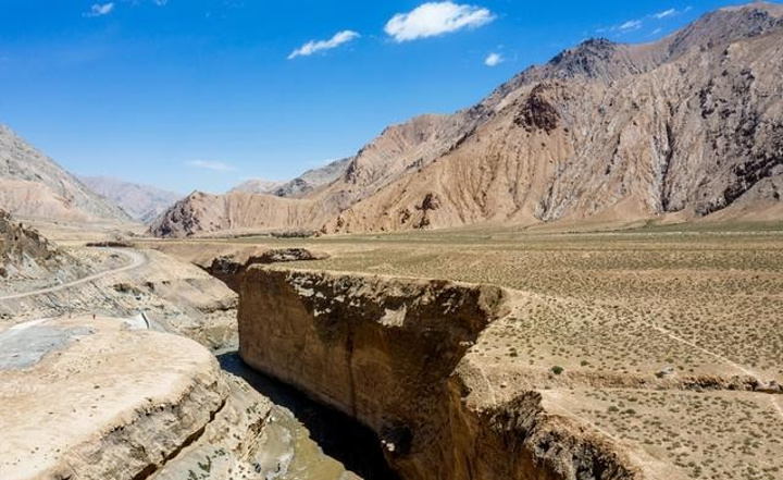 昆仑大峡谷是地球经过亿万年地质演变形成的美丽伤痕,稍微低洼的地方是一条溪流,溪流旁边有一条幽深的小径,两旁崖壁高耸,阳光只能透过缝隙小心翼翼地照到地面上,因为受到遮挡,有的位置每天被太阳照到的时间很短。