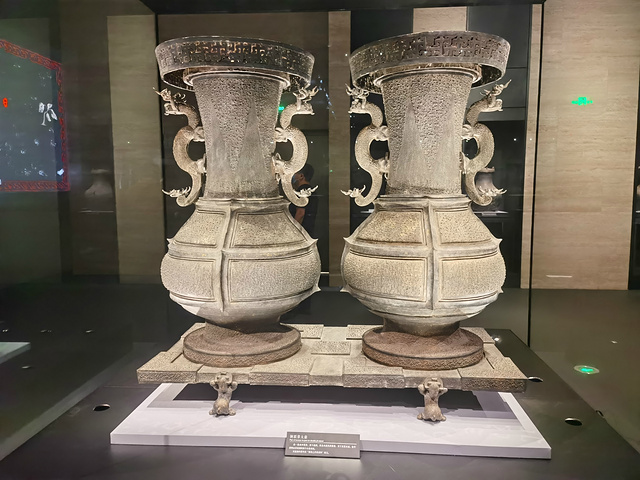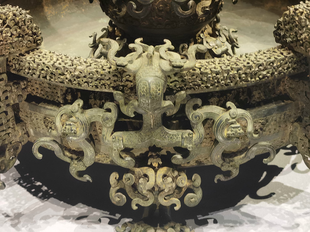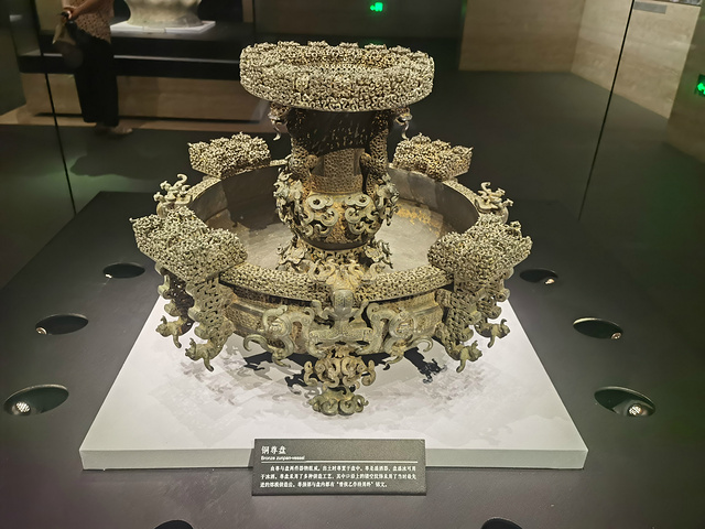 曾侯乙尊盘,中国青铜工艺的巅峰之作。尊体共饰28条龙,32条蟠螭,盘体饰龙56条,蟠螭48条。是先秦时期制作的最为复杂、精美的青铜礼器,失蜡法铸造技术已经达到极高的水准。尊盘分两部分,尊用来盛酒,盘用来装水。