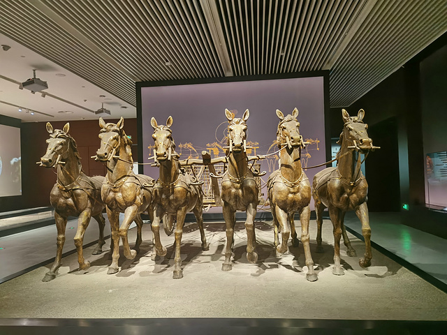 千乘之国,战国中期楚国的军事实力,号称“带甲百万,车千乘”。下图的这些铜马是新做的,不是文物。
