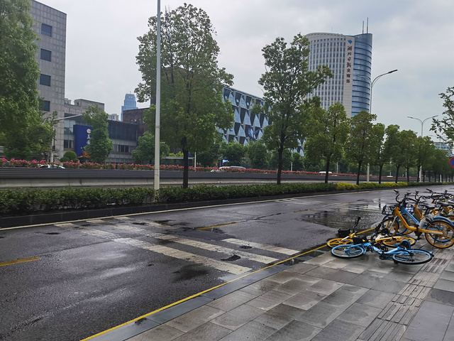 省博湖北日报地铁站出来,刚刚下过雨。