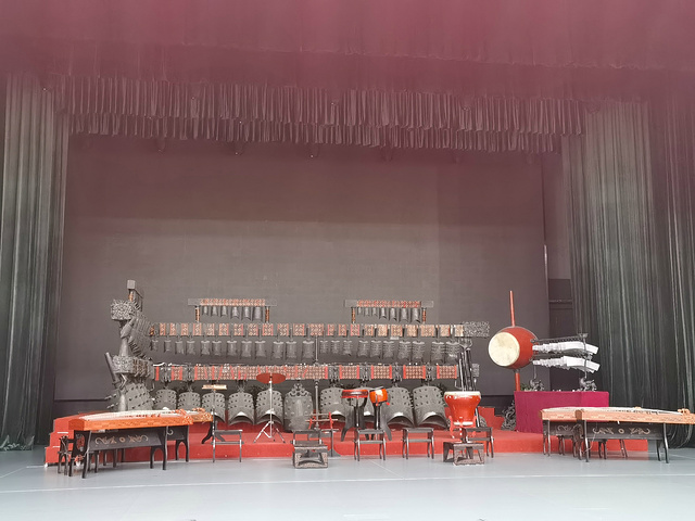编钟演奏在负一楼的天籁,要现场扫码或人工买票。走,去听听2400年前的“流行音乐”。