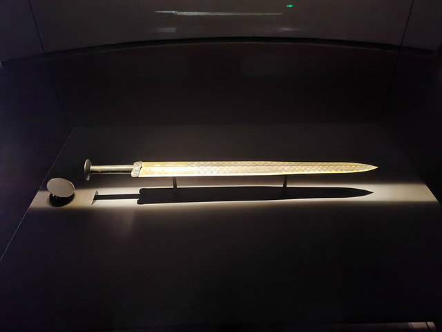 第一站,越王勾践剑,独自占了一个馆。馆里只有一件展品,就是一把剑!