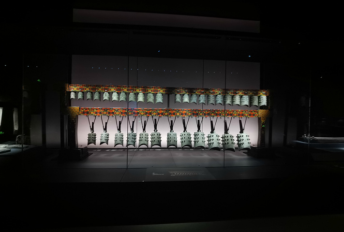 曾侯乙编钟为东周时期的一套大型礼乐重器,是考古所见最大、最重、音乐性能最完好的打击类乐器。全套编钟重5吨,共65件钟,十二律齐备,每件合瓦形钟均能演奏呈3度音阶的2个音。编钟上的铭文记录了一部金光闪烁的乐律经典。