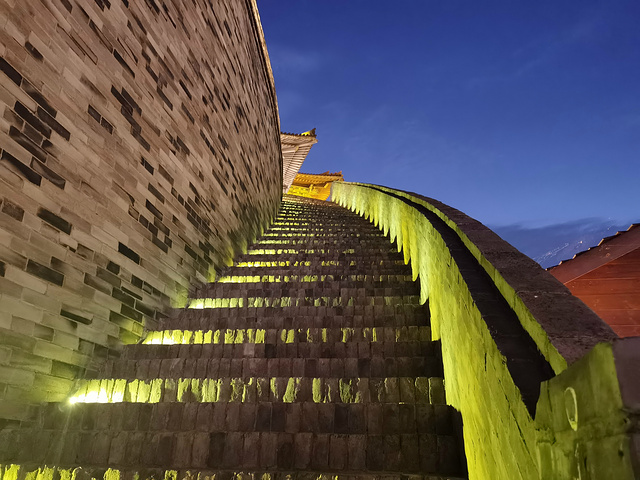 城楼晚一些就不给上了,应该是涉及到安全因素。但是如果能上去欣赏灯光下的唐城,应该会更好看些。