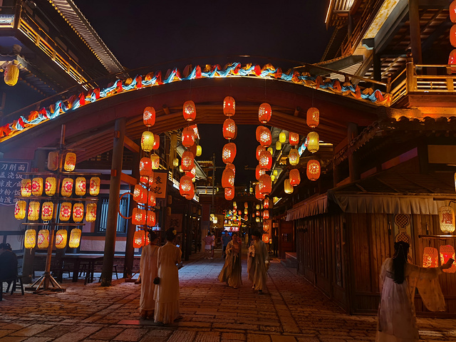 很多租衣服的,应该是汉服。靠近出口的地方有一些可以吃饭的地方,出景区后也有一条唐人街可以吃饭和夜宵。