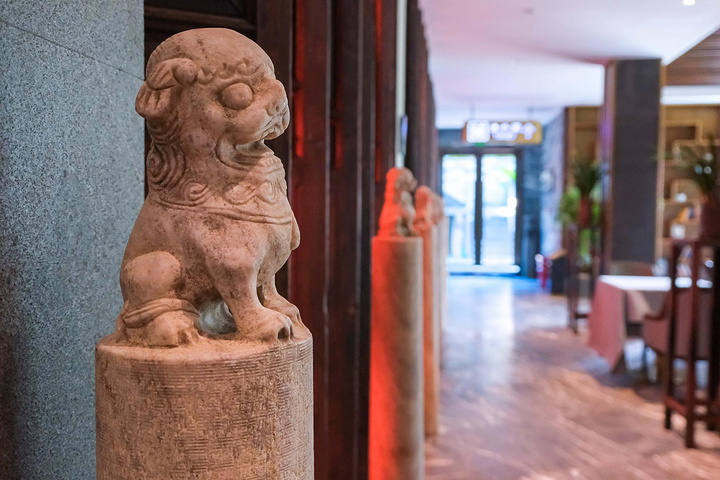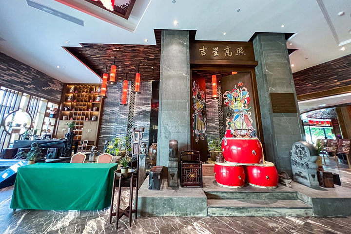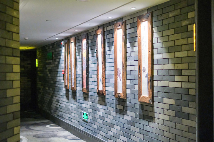 这家客家文化酒店在店面装修上,把每一个细节都布置的很到位,处处都向来人展示着客家风情。整店以极富时代标记性古代的客家特色青水砖、古色古香的老门板,全手工打的石雕、怀旧的家具、韵味无穷的客家油画、以前留下的石碓等等……沿路众多的客家文化缩影装饰,我犹如漫步在本地一个后现代的客家大院!