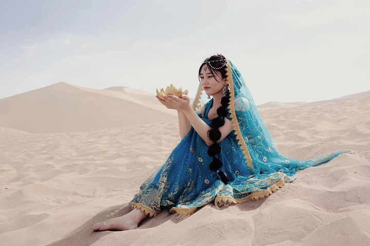 沙子很烫是真的,景色很美也是真的。不要买滑沙板 压根滑不下来,最好准备好鞋套 因为沙子实在是太烫了,地表温度有五十多度,关键是我鞋子还掉了 光脚边走边喊 实在没勇气走到沙顶了,摄影师帮我刨了个小坑,我坐在里面拍照 此刻的我离烤肉就只差一把孜然了.....