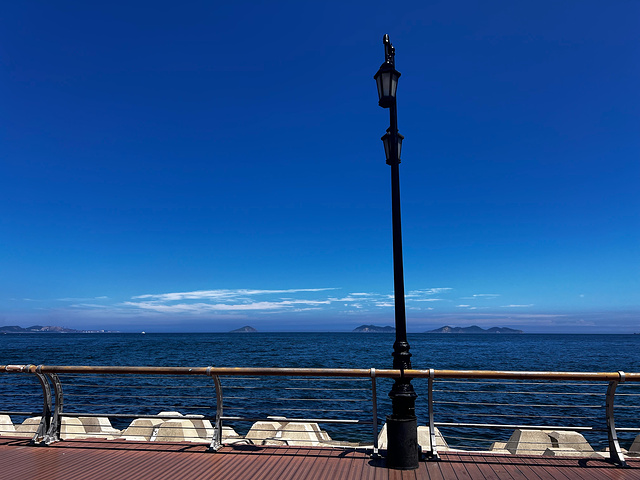 回到公园门口,有一段路是临海的,路旁有饮品店还有吃饭的时候,也提供了一些开放的设施供游客拍照,又是另一种不同风格的体验