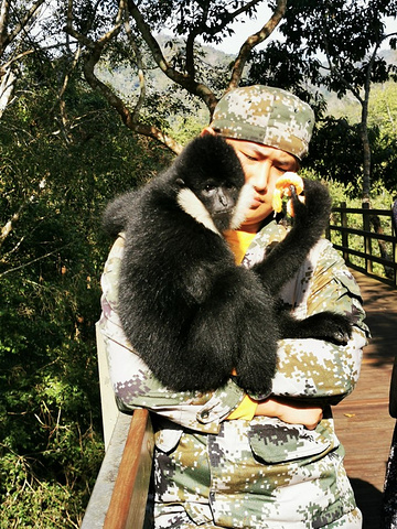 走在通向野象的栈道上,一只长臂猿突然蹦出来,一下子跳到一个工作人员怀中。这个工作人员说,这个长臀猿跟了他四年。人们纷纷掏出手机拍他,给他吃的。它完全象个小孩子,时而吃东西,时而蹦到树上,时而玩倒立,可爱极了!按 达尔文 的进化学说,这可是人类的祖宗!