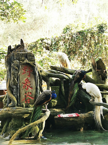 通往寻找野象的栈道旁,遇见到很少看到的白孔雀、金刚鹦鹉。平时见到的都是绿孔雀,白孔雀一般是人工繁育下野生蓝孔雀的变异品种,数量稀少,是极为珍贵的观赏鸟。想看孔雀开屏,或许见游客太多,绿孔雀与白孔雀都懒洋洋的。