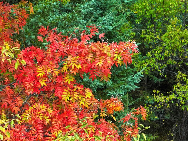 此处的彩林是一幅画,不需彩笔浓淡,便如天边的流霞,轻易就能装点出秋的浪漫,托起秋日红色的梦。