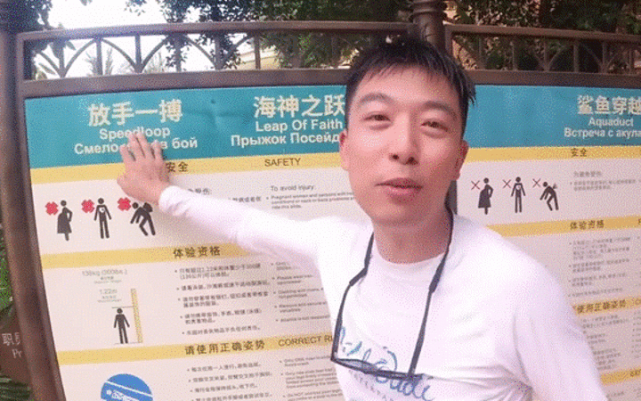 海神之跃,是一次勇气的挑战,先从高空一跃而下,再从全是鲨鱼的水底玻璃管道中穿过,刺激!