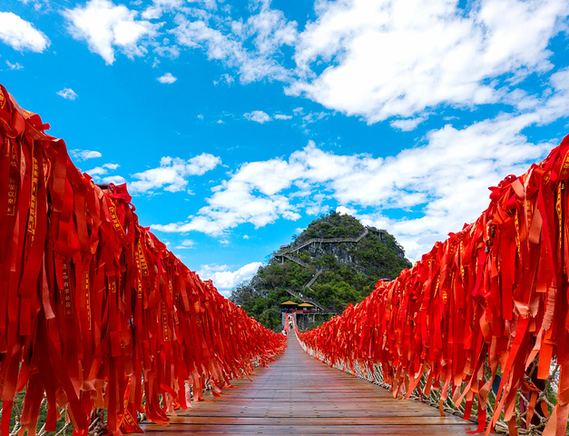 如意云顶是如意峰最高点360度观景平台,是人们祈福如愿的吉祥圣地,也是远眺溶岩峰林奇观最佳地。