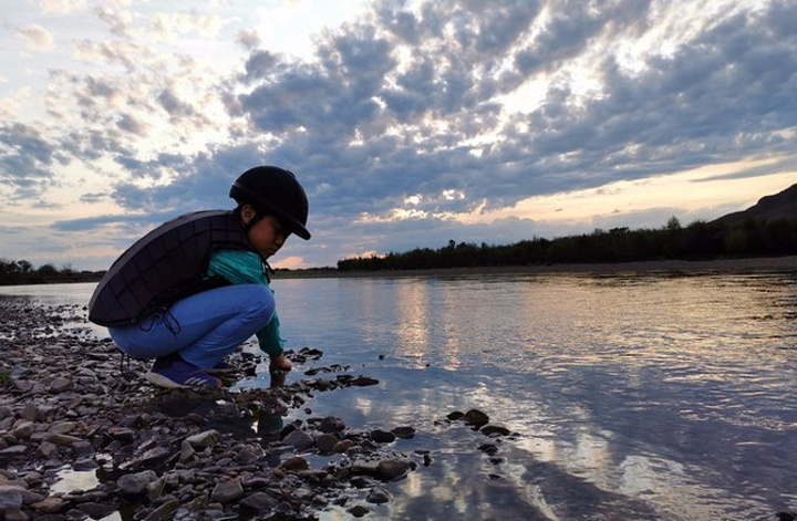 驰骋马场后的小歇--火烧的晚霞与冰冷的河水!