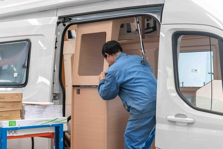 此外,偌大的空间内更多的是房车的零件和精密的仪器设备,工人穿着统一的工服,在各自的岗位上专注于自己的工作,设备正在有规律地或为外壳喷漆,或组装内部构造,整个车间整洁又明亮,不落一丝灰尘。如此公司生产出的如此人性化的产品,既外形美观,又十分人性化,试想若带上亲朋好友或是独自外出旅行,如此人性化的设备会为你削减多少麻烦?