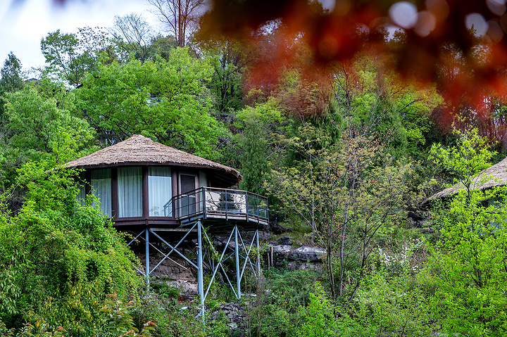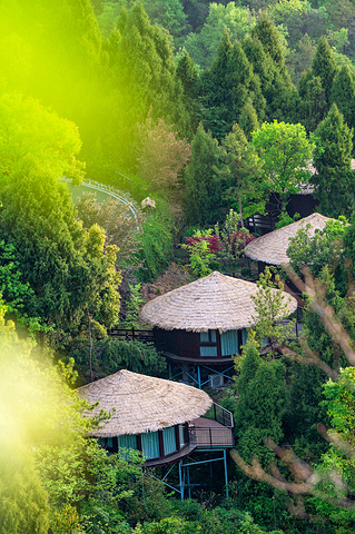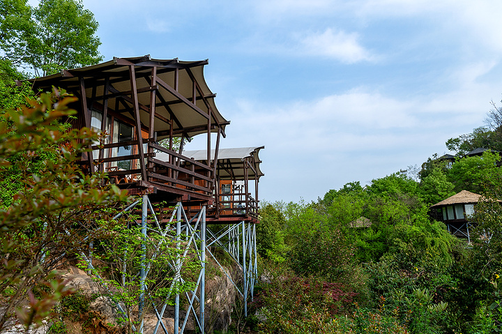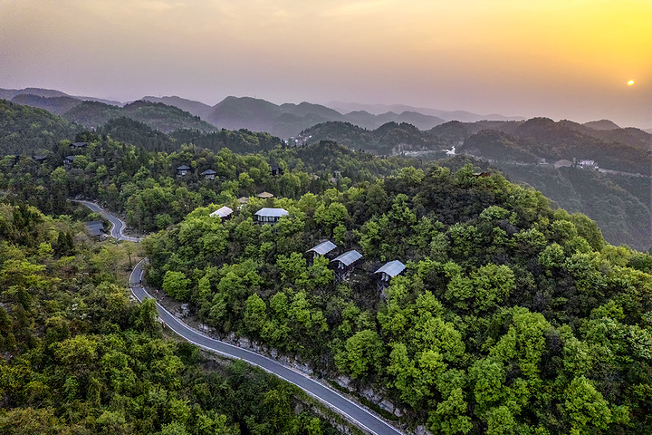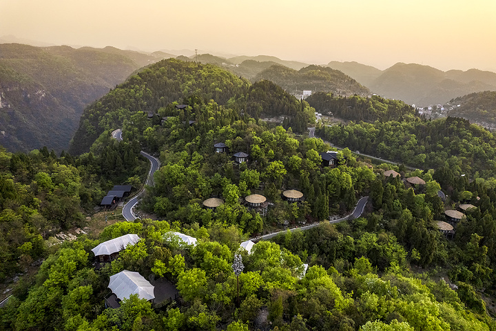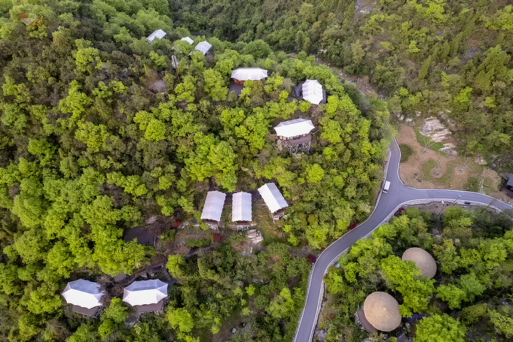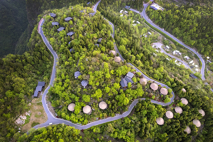 营地位于长江之滨、西陵峡畔的青山丛林之间,外部环境十分优秀,从高空俯瞰,一幢幢木屋像是森林中的蘑菇,恣意又可爱。
