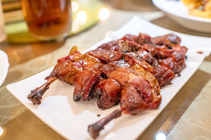 另外值是一说的是,这样乡野的营地餐厅,烤鸭却做得十分靠谱,皮脆肉嫩汁多,香而不油。
