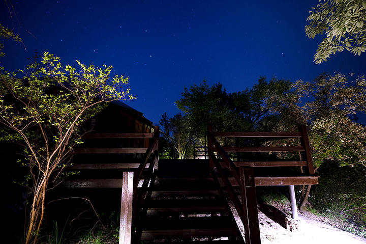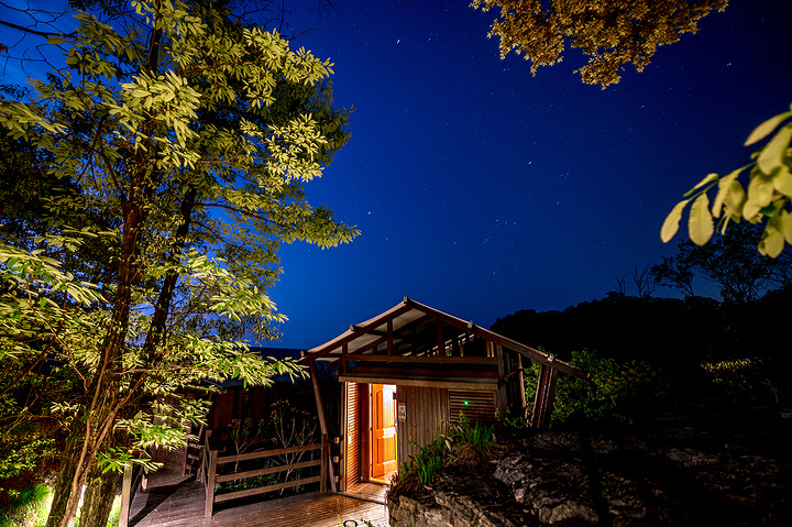 晚上住在木屋,端一杯小酒在露台上,陪着微风聊个天,耳边是虫鸣低吟,抬头是满天星斗,那样的恬静,让人着迷。